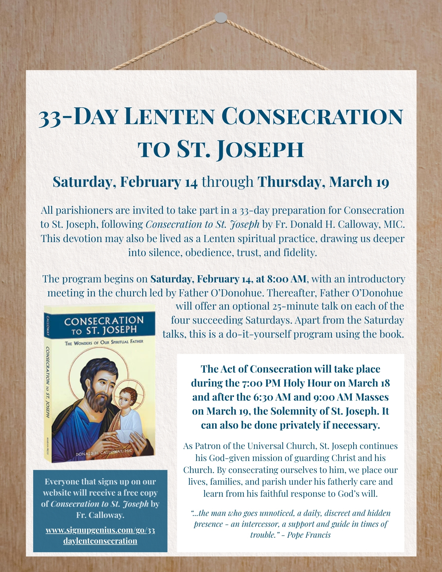 33-Day Lenten Consecration to St Joseph (Next Talk: February 28th) Book Signup Posted on February 11, 2026