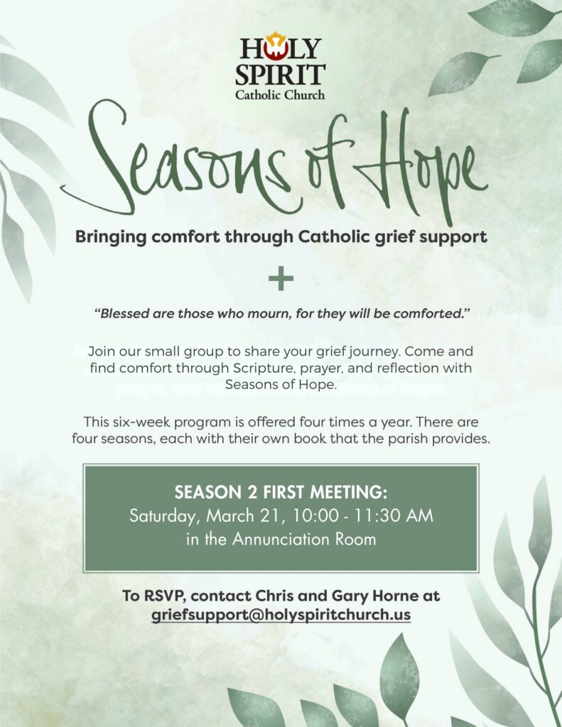 Meetings are weekly on Saturday mornings in the Annunciation Room in the Narthex, beginning Saturday, March 21, 2026 at 10:00am-11:30am.