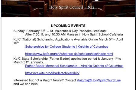 Parish News Pancake Breakfast (February 15th) Read More 40 Days for Life (February 18th – March 29th) Read More Knife Skills: Salsa Class – Sponsored by Women’s Council (February 21st) Read More Troop 50 Annual Mulch Sale (Order By March 1) Read More 2026 All Saints Car Raffle Read More Till and Tithe for the Hungry Read More Monthly Food & Diaper Collections Read More Upcoming Young Adult Events (Bible Study: February 12th) Read More High School Youth Ministry Upcoming Events High School Youth Ministry Events Read More Knights of Columbus Upcoming Events Read More Pregnancy Resources (Gabriel Project) Read More